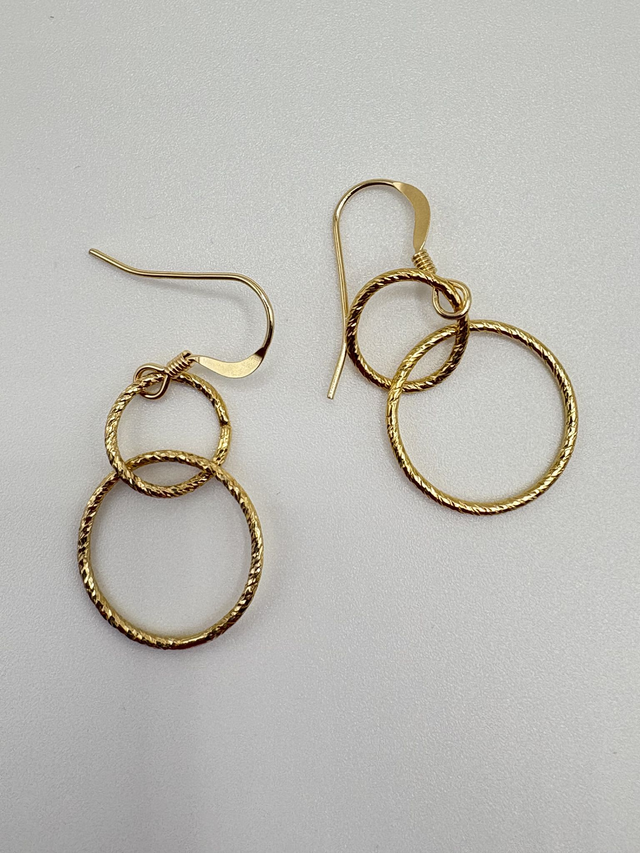 Petits anneaux entremêlés, martelés, gold filled (or laminé)